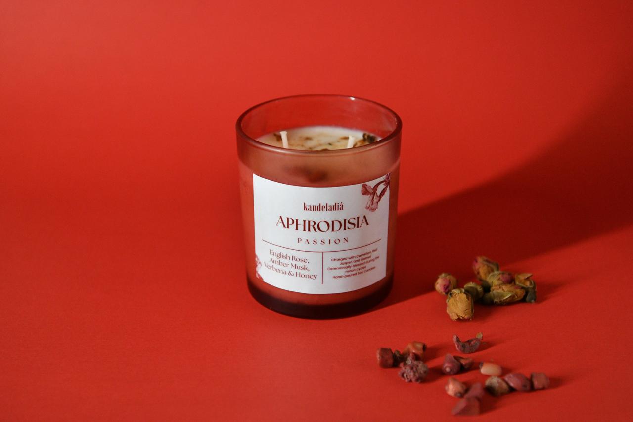 Awaken your senses and invite passion into your space with Aphrodisia. This intention candle is crafted to inspire romance, sensuality, and self-confidence, allowing you to connect deeply with your desires and embrace your most magnetic energy.
