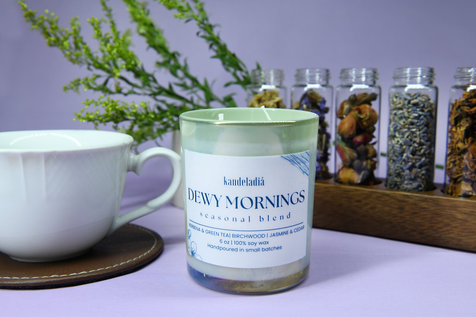 Dewy Mornings captures the feeling of waking up in the countryside, when the air is cool and the grass is still damp from the early dew. Refreshing but gentle, it helps you begin the day with clarity and a steady calm.